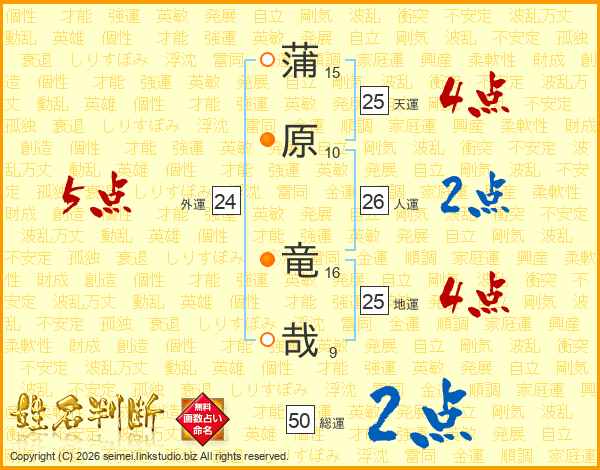 蒲原竜哉さんの天運は25画の4点!