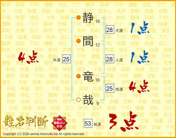 静間竜哉さんの地運は25画の4点!