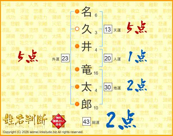 名久井竜太郎さんの天運は13画の5点!