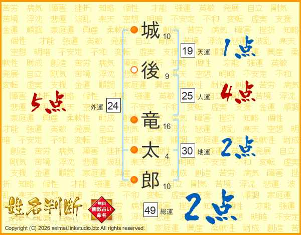 城後竜太郎さんの人運は25画の4点!
