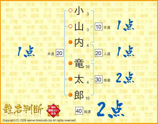 小山内竜太郎さんの総運は40画の2点!