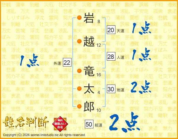 岩越竜太郎さんの天運は20画の1点!