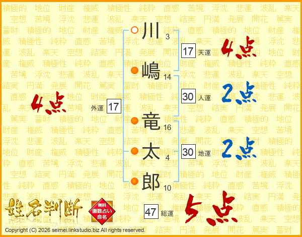 川嶋竜太郎さんの総運は47画の5点!