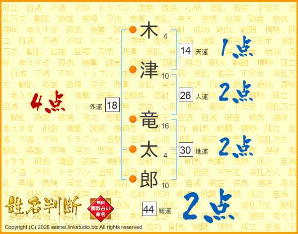 木津竜太郎さんの天運は14画の1点!