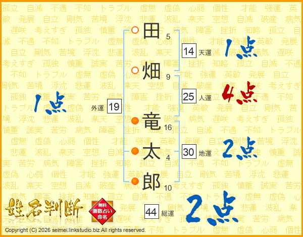 田畑竜太郎さんの総運は44画の2点!