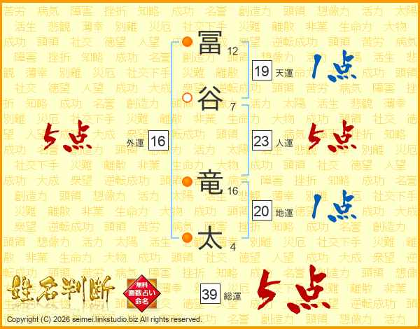 冨谷竜太さんの総運は39画の5点!