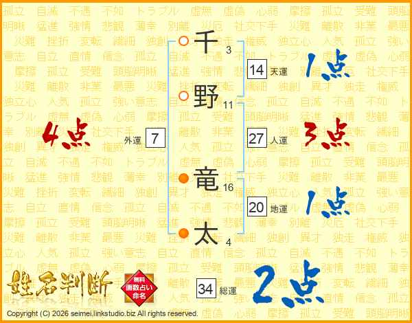 千野竜太さんの天運は14画の1点!