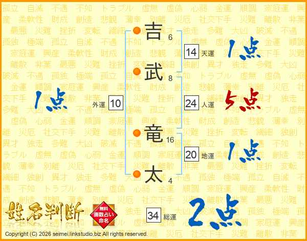 吉武竜太さんの天運は14画の1点!