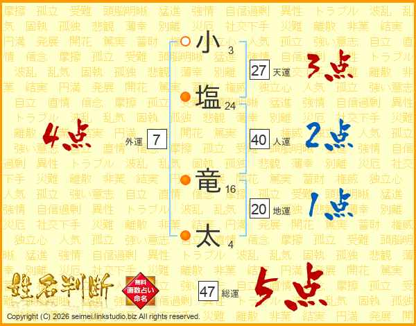 小塩竜太さんの総運は47画の5点!