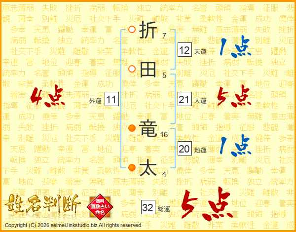 折田竜太さんの総運は32画の5点!
