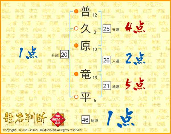 普久原竜平さんの総運は46画の1点!