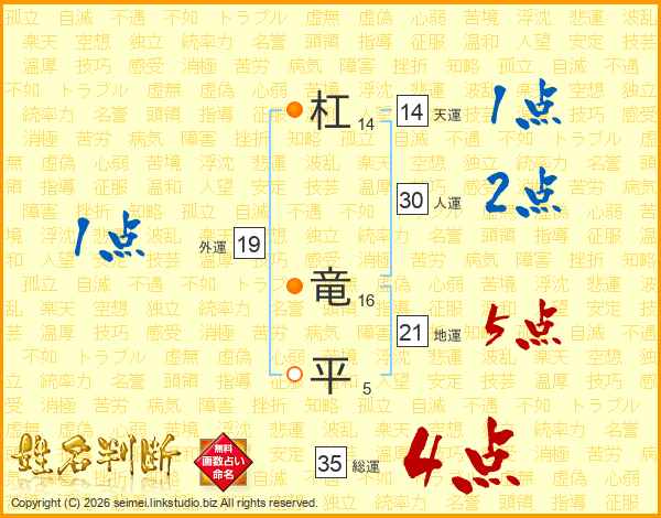 杠竜平さんの天運は14画の1点!