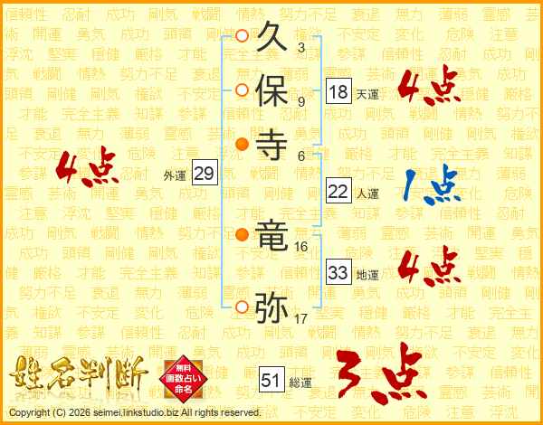 久保寺竜弥さんの地運は33画の4点!