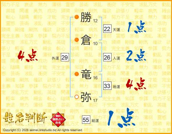 勝倉竜弥さんの地運は33画の4点!