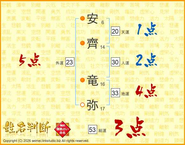 安齊竜弥さんの外運は23画の5点!