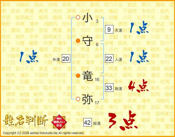 小守竜弥さんの地運は33画の4点!