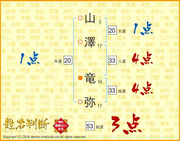 山澤竜弥さんの人運は33画の4点!