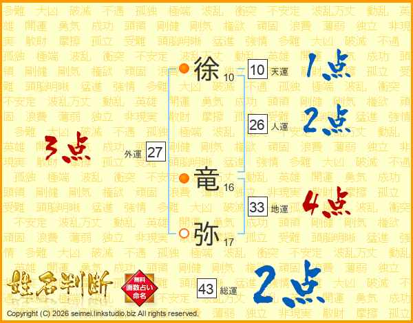 徐竜弥さんの地運は33画の4点!