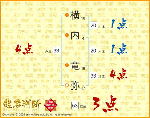 横内竜弥さんの外運は33画の4点!