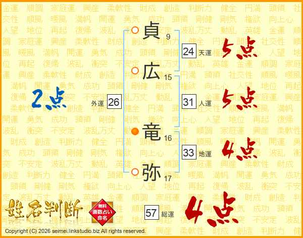 貞広竜弥さんの総運は57画の4点!