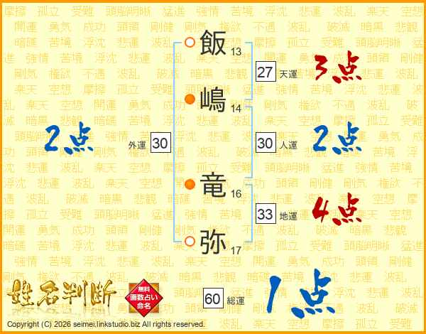 飯嶋竜弥さんの総運は60画の1点!