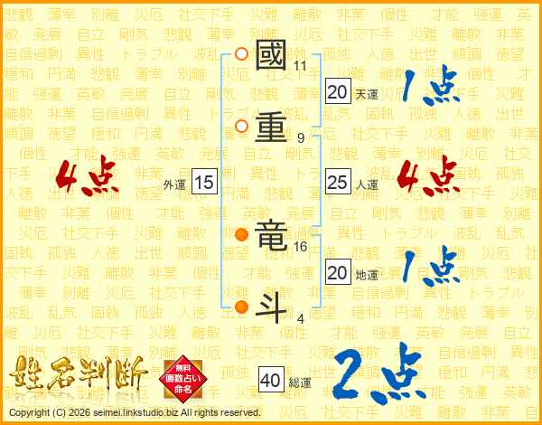 國重竜斗さんの人運は25画の4点!