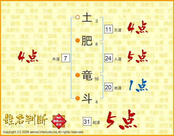 土肥竜斗さんの総運は31画の5点!