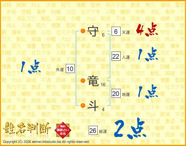 守竜斗さんの総運は26画の2点!