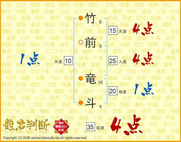 竹前竜斗さんの総運は35画の4点!