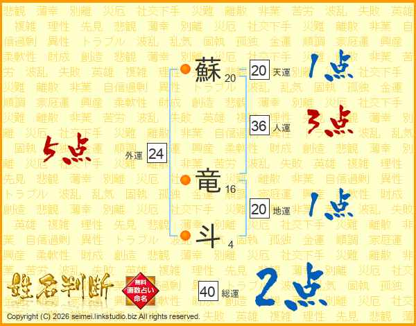 蘇竜斗さんの総運は40画の2点!