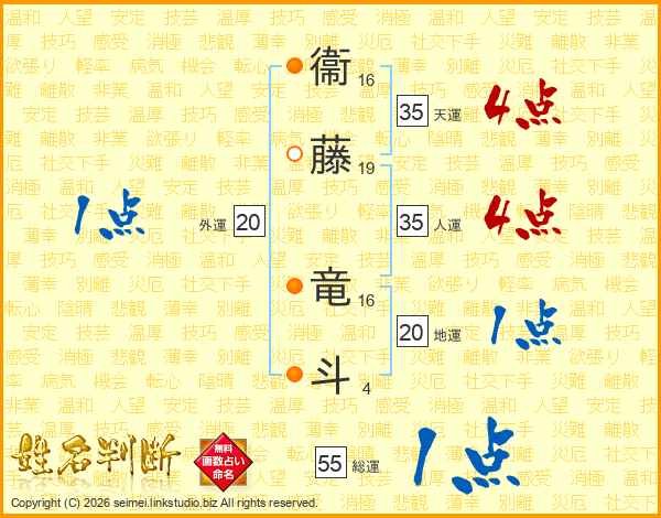 衞藤竜斗さんの天運は35画の4点!
