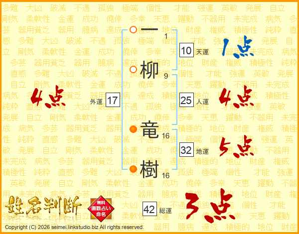 一柳竜樹さんの外運は17画の4点!