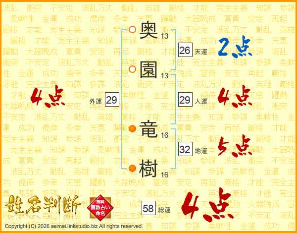 奥園竜樹さんの総運は58画の4点!