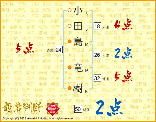 小田島竜樹さんの地運は32画の5点!