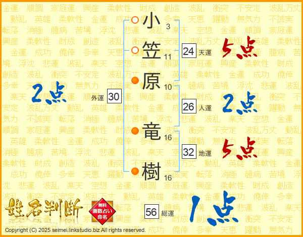 小笠原竜樹さんの総運は56画の1点!