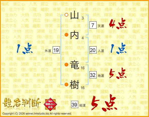 山内竜樹さんの総運は39画の5点!