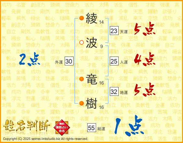 綾波竜樹さんの天運は23画の5点!