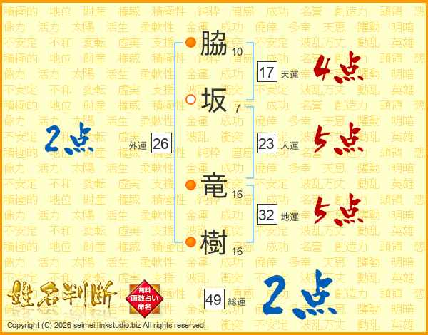 脇坂竜樹さんの天運は17画の4点!