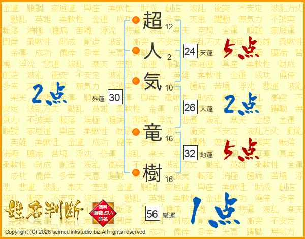 超人気竜樹さんの総運は56画の1点!
