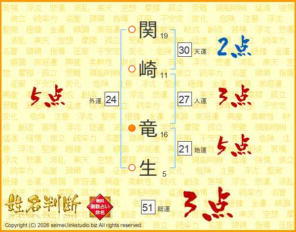関崎竜生さんの地運は21画の5点!