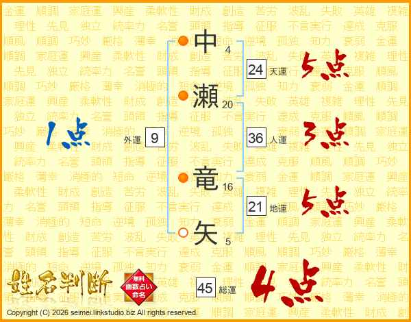 中瀬竜矢さんの総運は45画の4点!