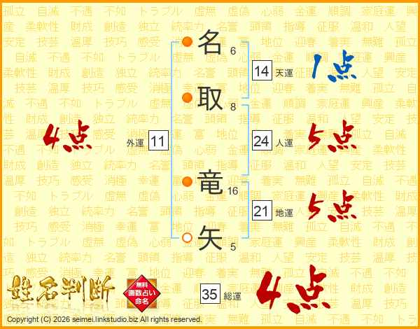 名取竜矢さんの総運は35画の4点!