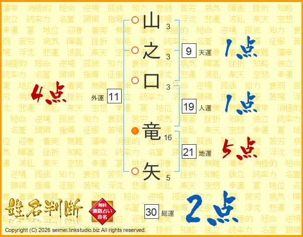 山之口竜矢さんの総運は30画の2点!