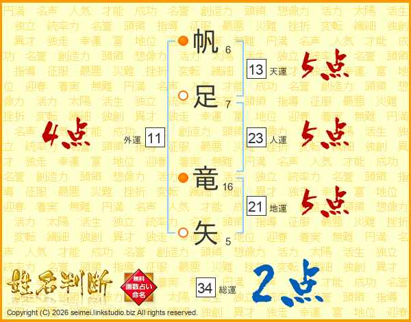 帆(6画)足(7画) 竜(16画)矢(5画)
