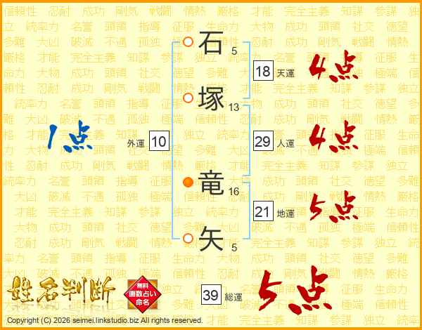 石塚竜矢さんの総運は39画の5点!