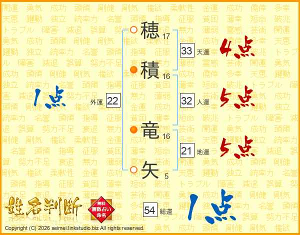 穂(17画)積(16画) 竜(16画)矢(5画)