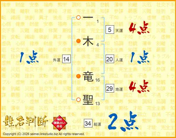一木竜聖さんの総運は34画の2点!