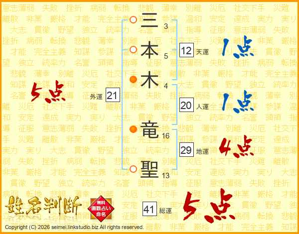 三本木竜聖さんの総運は41画の5点!