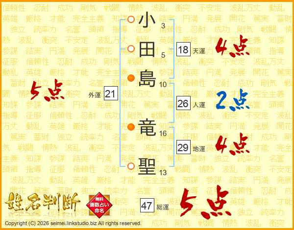 小(3画)田(5画)島(10画) 竜(16画)聖(13画)