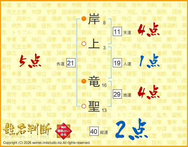 岸上竜聖さんの地運は29画の4点!